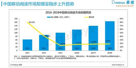 根據(jù)易觀智庫(kù)發(fā)布的《中國(guó)移動(dòng)閱讀市場(chǎng)趨勢(shì)預(yù)測(cè)報(bào)告2016-2018》數(shù)據(jù)預(yù)測(cè),這3年市場(chǎng)規(guī)模比較穩(wěn)定,在2018年,收入規(guī)模將達(dá)到166億,屆時(shí)將會(huì)出現(xiàn)更多閱讀app,在閱讀市場(chǎng)上競(jìng)爭(zhēng)廝殺。孰輸孰贏,讓我們拭目以待。