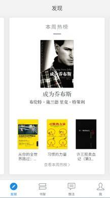 將本周熱榜置于發(fā)現(xiàn)模塊,用戶可方便快捷查看本周熱榜書(shū)籍,快速了解近期市場(chǎng)上最受歡迎的書(shū),以免落伍;