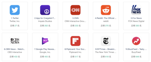 今天看了一下App Store 美國新聞App TOP 1500榜單,與中國的情況大相徑庭。